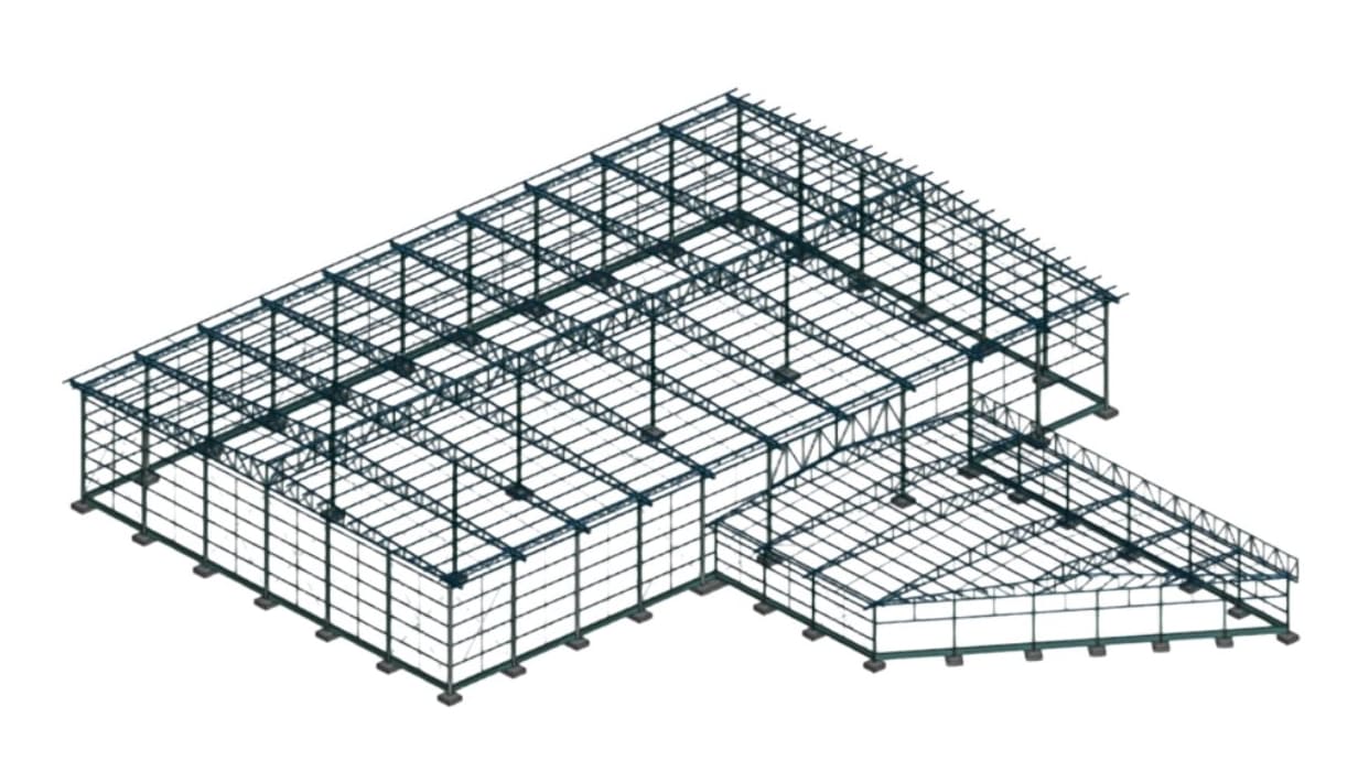 - Desenvolvimento do cálculo, modelagem e detalhamento de estrutura metálica;